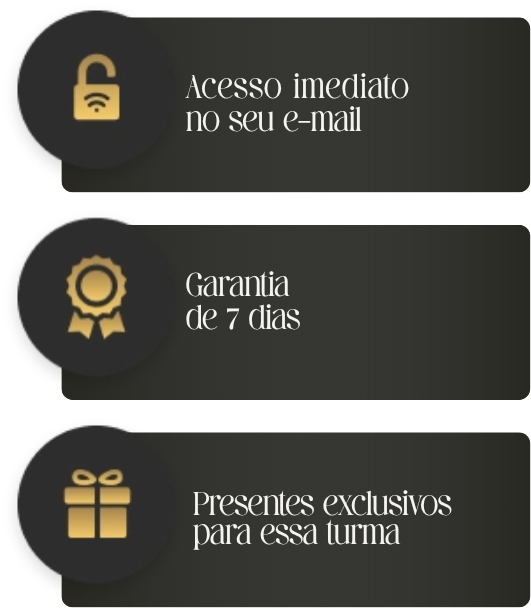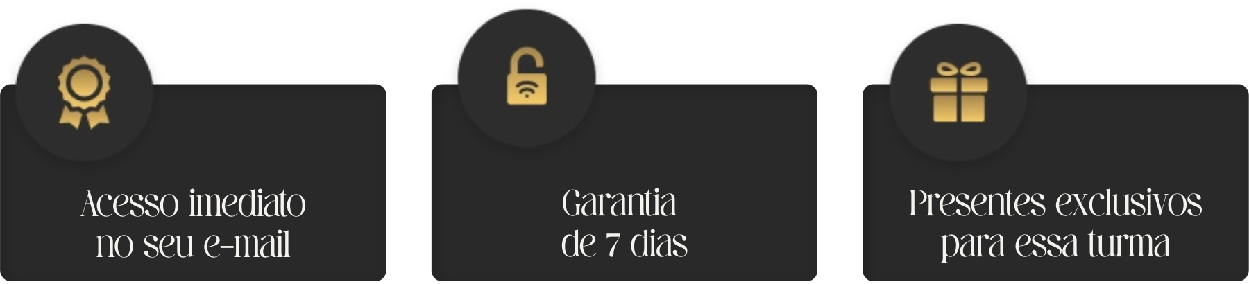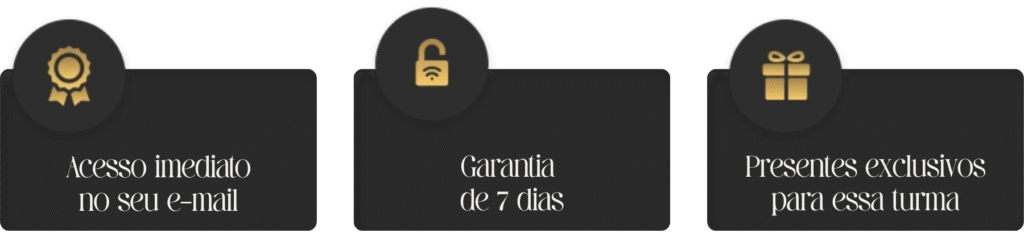 Você terá acesso imediato a todos os 5 módulos do curso, além dos bônus exclusivos (templates prontos, prompt de paleta de cores e arsenal de combinações de fontes). Tudo atualizado e disponível por 1 ano.