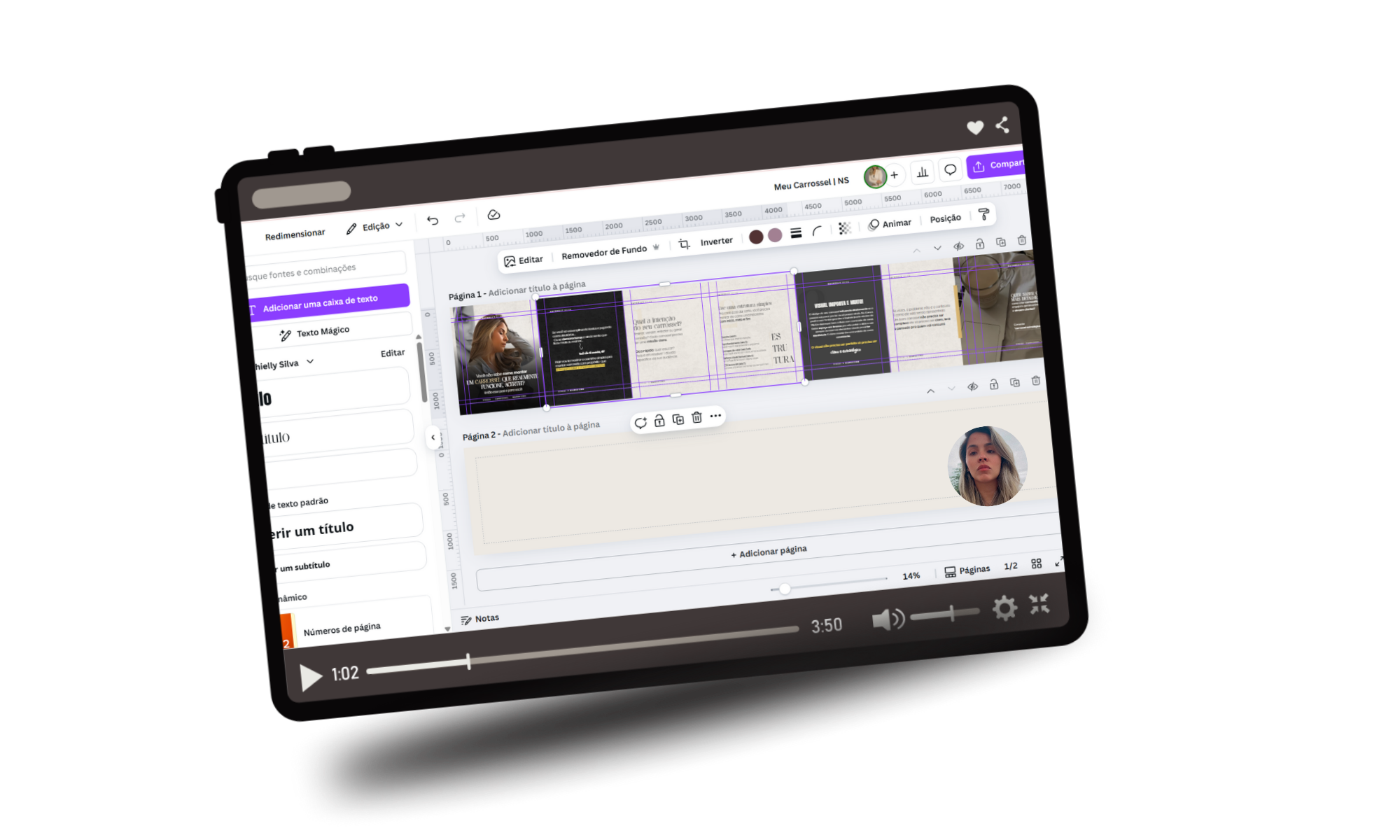 Vou te ensinar meu método exclusivo para pegar um único carrossel (criado 100% por mim) e multiplicar em diversos conteúdos. Com isso, você ganha consistência, variedade e economia de tempo sem precisar criar algo novo do zero todos os dias.